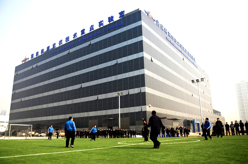 Using silver-gray coated glass, the whole building is covered with BIPV. It is the first national key laboratory in China's photovoltaic industry that has passed the acceptance of the Ministry of Science and Technology, covering the whole industrial chain of solar, representing the highest level of photovoltaic research in China. In the standard can fully meet the local Baoding 50% building energy saving standards and has been recognized by the country and the industry, on behalf of the domestic BIPV project towards the practical.