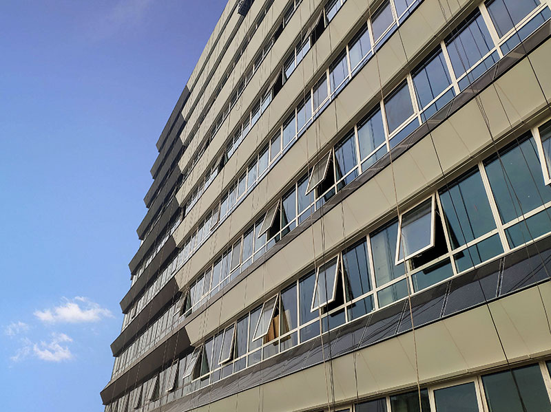 Window wall for installation without changing the original building exterior wall. The optimal inclination angle ensures high power generation rate and as certain shadow.