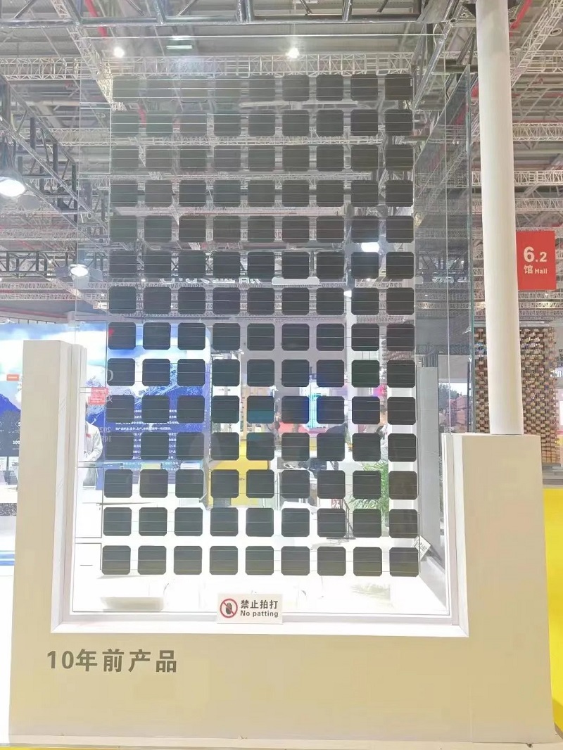 此外,还有融合了光伏发电技术的色彩绚丽多变的光伏地砖,以及十年前后产品的“时空对话”。