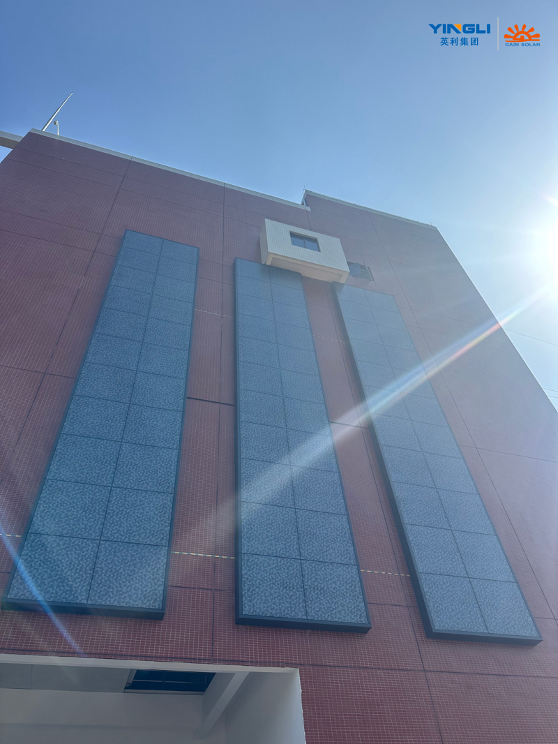 琉璃·空明安装在配电楼的南面,作为建筑封装材料,琉璃·空明具有高安全长寿命、高强度轻质化、透光率定制化、耐腐蚀易清洁等优点。青砖·石韵安装在西面,它采用特制砖石玻璃,色彩多样持久,保温隔热优良,提供清洁绿电。除建筑外立面安装58kW光伏绿色建材外,该项目还将光伏车棚、光伏路灯等光伏+应用场景糅合进来,组成“清洁、绿色、节能”的综合智慧能源网络系统。