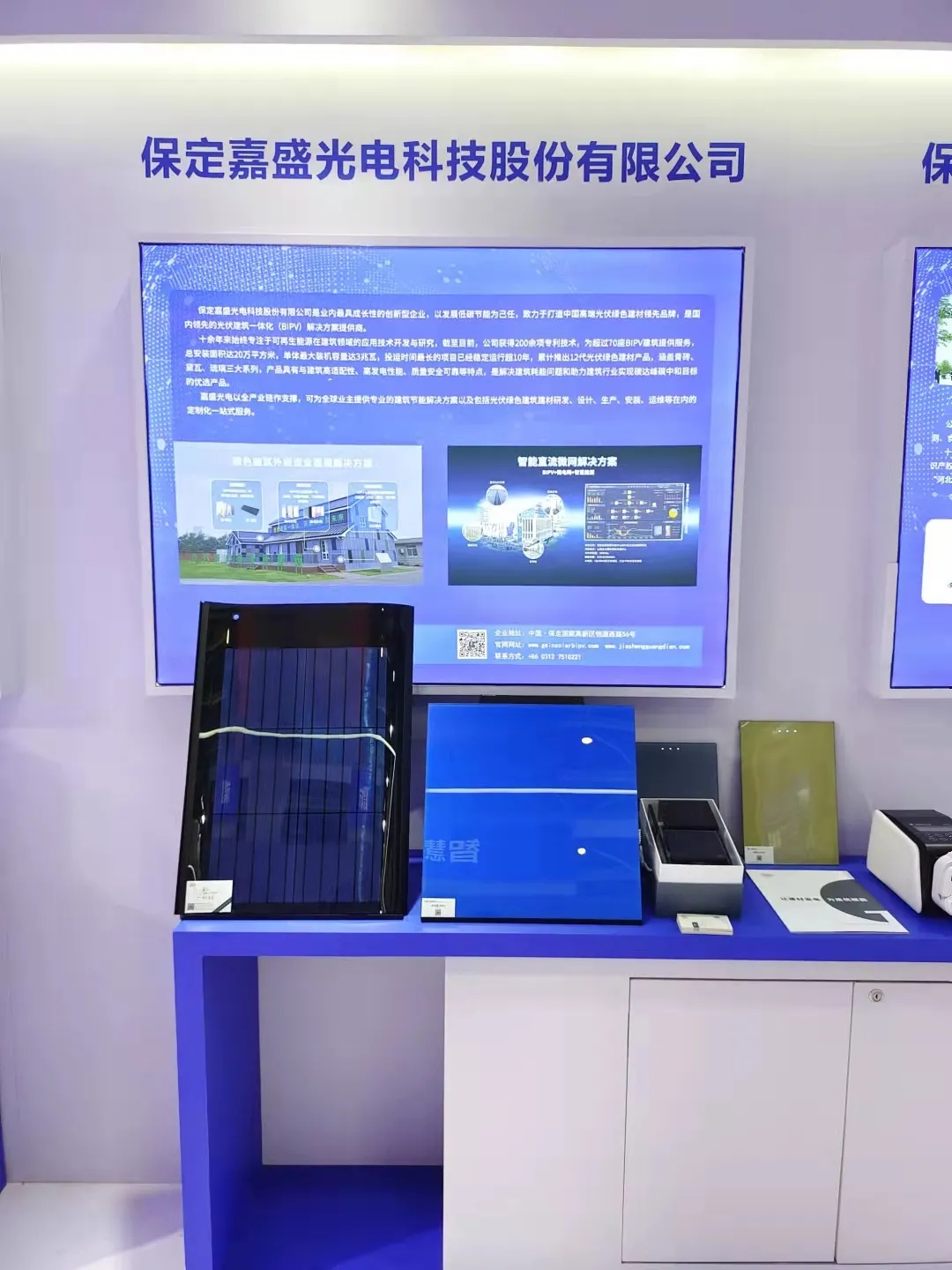 同一天,2021中国国际数字经济博览会在石家庄举行,嘉盛光电作为光伏建筑一体化解决方案提供商,以“数字赋能、绿建未来”为主题,进行了重磅亮相。