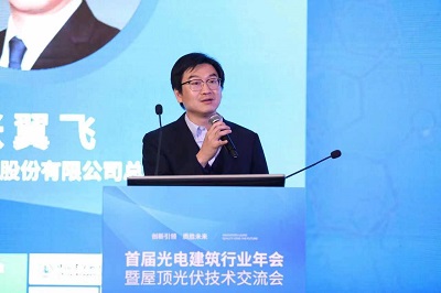 会上,嘉盛光电总经理张翼飞以《光伏绿色建材在绿色建筑领域的应用》为题,面向线上线下的专家学者做了主旨演讲,系统介绍了光伏绿色建材产品相较于传统分布式在外观及稳定性、防火安全性等方面的优势。