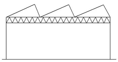 人字型:由一个尖顶单元构成,屋顶面坡度在15°以上,屋面的大部分雨、雪可直接滑落到地面或天沟,而且屋面高差大、自由空间大。