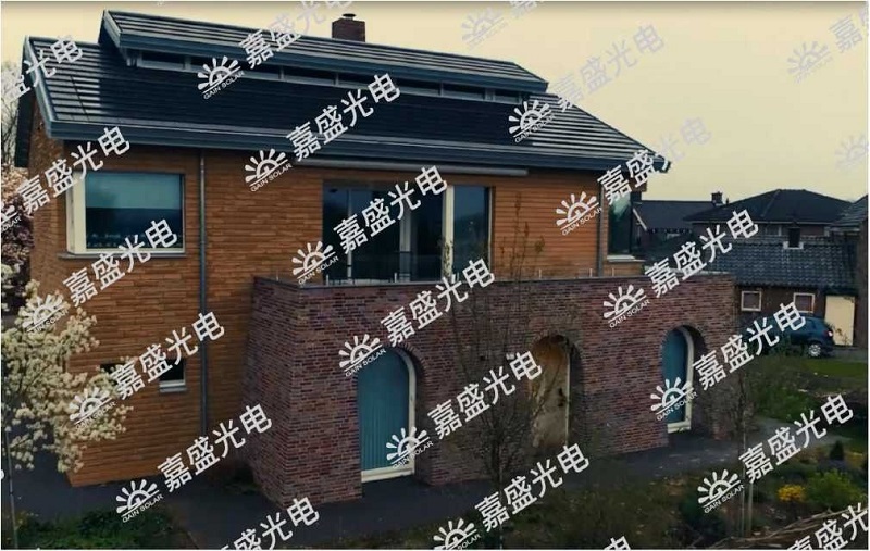 2021年底,俄罗斯一位业主找到嘉盛,希望在别墅屋顶应用光伏发电解决限电问题,同时还要兼顾房屋整体美观性。为此,嘉盛光电为业主量身定制了黛瓦+青砖的综合解决方案,并在屋顶应用了第三代黛瓦,独特纹理外观和储能系统使得黛瓦再次出圈。