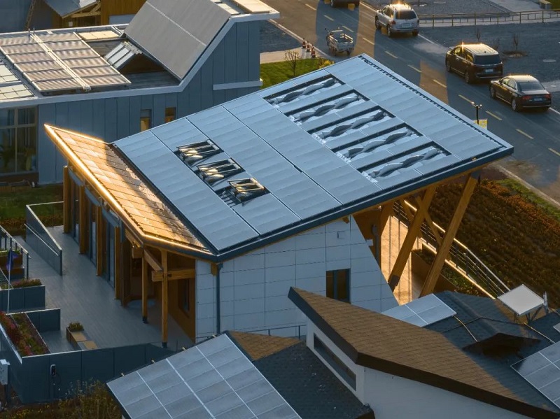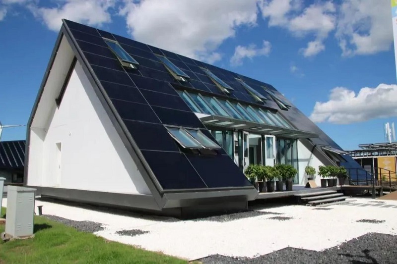 R-cells“一生之宅”是全生命周期的零排放建筑,安装使用了30千瓦英利嘉盛光伏绿色建材。它在太阳能建筑集成技术上进行了创新,借鉴中国传统建筑“反宇向阳”的特点,采用不对称V型屋面形式,增加南向得热和采光,同时增加屋面光伏面积,在冬季也可以最大限度地利用太阳能,多余电能甚至可传输至电网,成为电能交易的“产销者”。