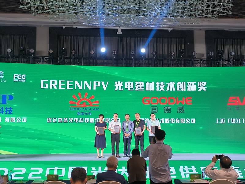 8月18日,由中国绿色供应链联盟光伏专委会联合浙江省嘉兴市秀洲区人民政府主办的以“聚焦问题补链、协同合作强链、创新升级延链、清洁低碳绿链”为主题的2022 中国光伏绿色供应链大会在浙江嘉兴成功召开。英利集团旗下专业的光伏建筑一体化(BIPV)企业保定嘉盛光电科技股份有限公司(以下称“英利嘉盛”)受邀参加本次峰会,并荣获2022年度GREENPV技术创新奖项。